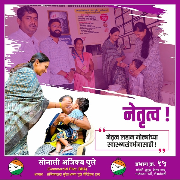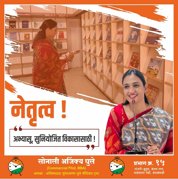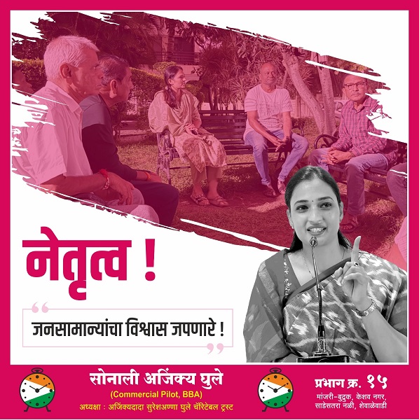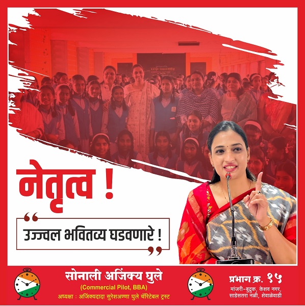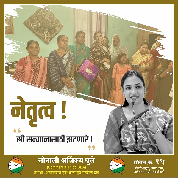सोनालीताई अजिंक्य घुले – मांजरी-बुद्रुक, केशव नगर, साडेसतरा नळी, शेवाळेवाडी परिसरातील लोकांच्या सेवेसाठी समर्पित आणि प्रगतीची नवी दिशा देणाऱ्या एक प्रेरणादायी नेत्या!